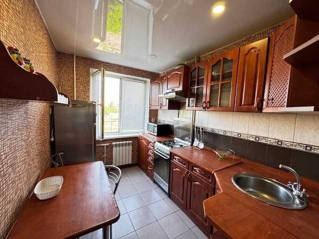 Квартира розташована на 5 му поверсі 9 ти поверхового будинку, не кутова, дуже гарний вид з вікна.