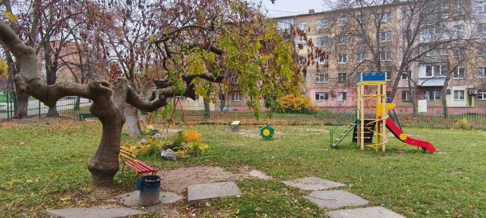 Земельна ділянка дозволяє розмістити парковку для авто, літній майданчик кафе або кав'ярні, тощо. На території вже побудовано дитячий майданчик та лавки для відпочинку. Озеленення території.