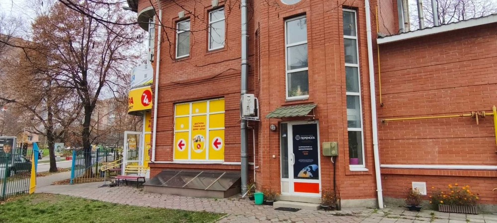 Площа приміщення 110 кв.м. Два окремих входи: центральній та боковий (до підсобних приміщень). Площа торгового залу 98.3 кв.м. Є кабінет, санвузол, підсобне приміщення.