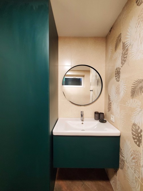 - Комфортабельний санвузол з душем, оснащений термостатом для забезпечення ідеальної температури води;