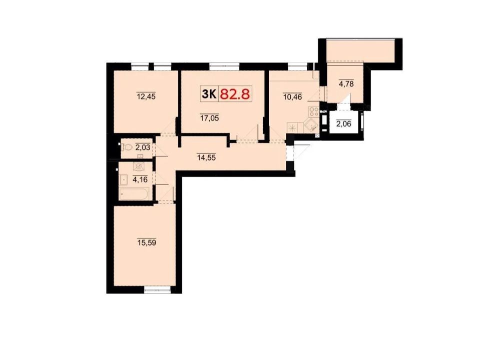 • Загальна площа 82.8 м2