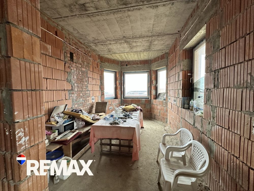 На ділянці побудовано двоповерховий житловий будинок, площею 265,9 кв.м. (будівництво завершено на 74%). Будинок побудовано з керамоблоку, утеплено мінватою. Дах перекрито металочерепицею.