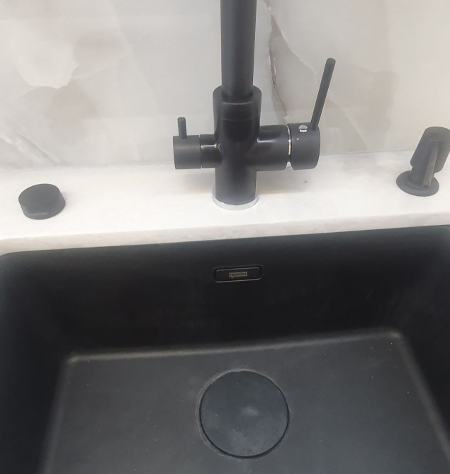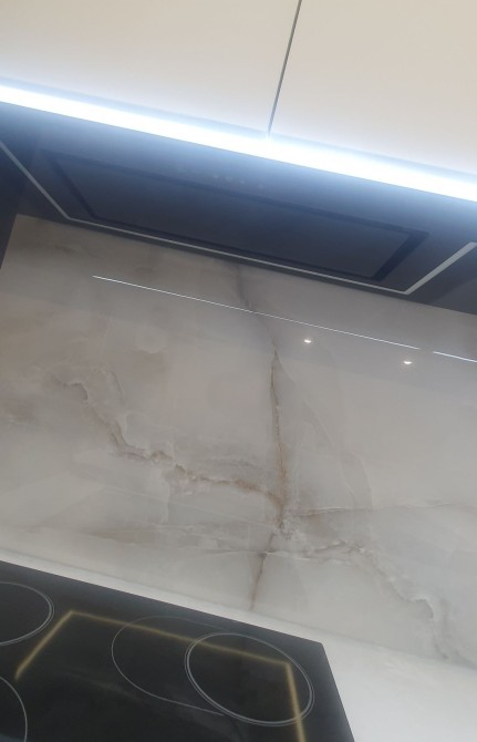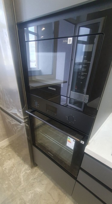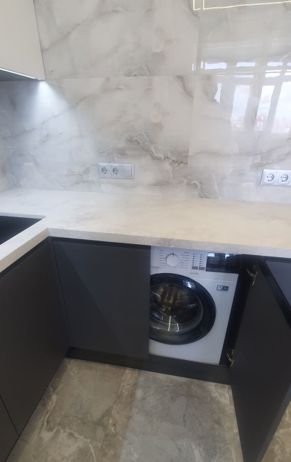 Кухня Rodа з вбудованою технікою Samsung (холодильник, духова шафа, свч пічь, варочна поверхня, посудомийка, витяжка, пралка), столешня і стіл з натурального каменю.