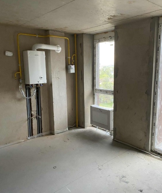 В квартирі зроблена лазерна стяжка підлоги та штукатурка стін (у ванній залишено під теплу підлогу