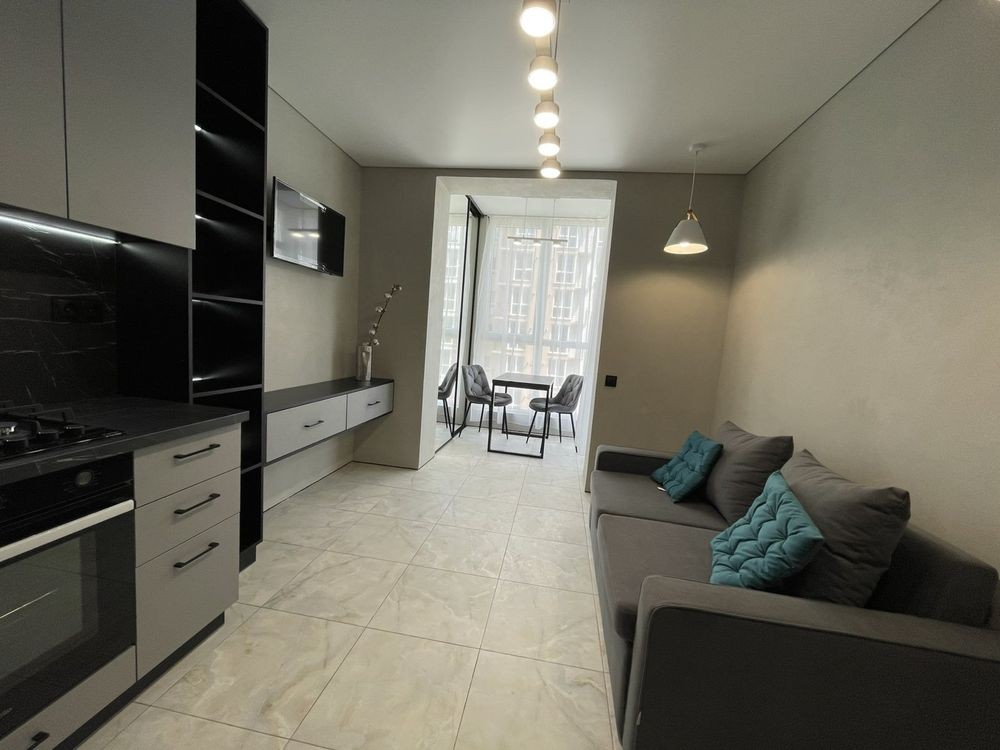 Продається квартира з якісним капітальним ремонтом . Планування : кухня студія , спальня та велика гардеробна кімната . Сучасне опалення автономним двоконтурным котлом обігрівом від підлоги . Вбудовані меблі та техніка , меблі виготовлені по індивідуальному проекту .