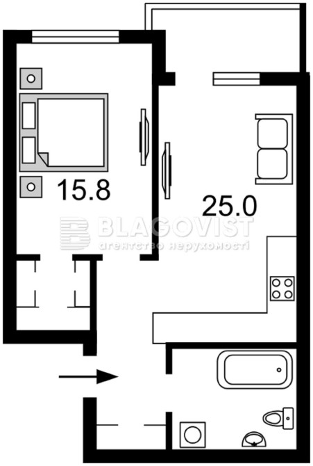 • Площадь кухни 25 м2
