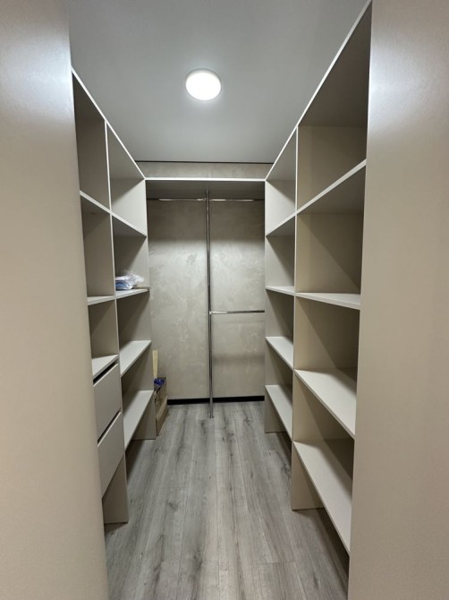В вартість включені меблі і техніка (посудомийна машинка, духовка, варильна поверхня, витяжка, вбудована мікрохвильова, вбудований холодильник, пральна машина), ліжко з матрасом, укомплектована гардеробна (окрема). Є два виводи кондиціонеру, один кондиціонер встановлений. Освітлення треки+точки.