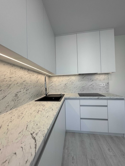 Брендова техніка: Electrolux (мікрохвильова, індукційна поверхня з WiFi), Bosch (посудомийна), Franke (витяжка), Ariston (бойлер з екорежимом)