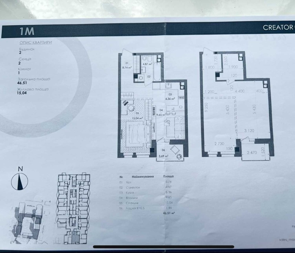 Продаж 1-кімнатної квартири в ЖК Creator City