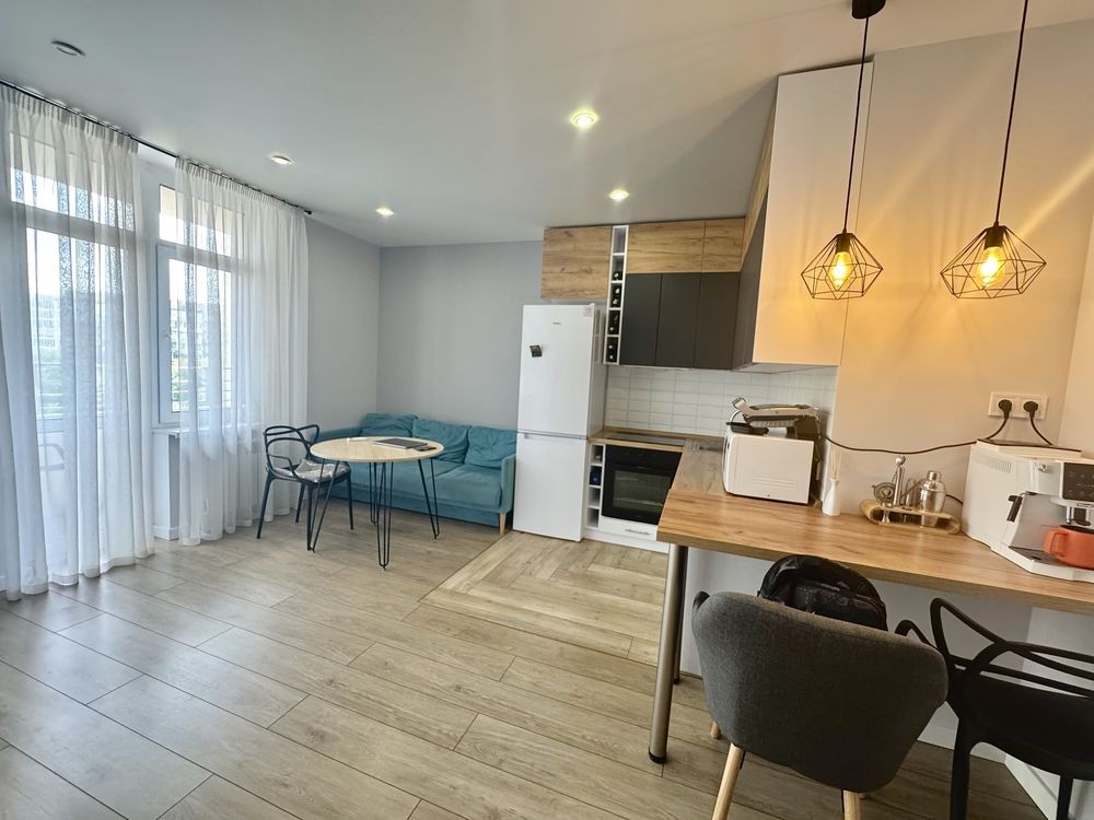 Квартира має сучасний якісний ремонт у світлих відтінках, що візуально збільшує простір та робить його максимально комфортним для проживання. У квартирі встановлено необхідну побутову техніку: посудомийну машину, пральну машину та бойлер. Продумане планування і функціональні зони дозволяють використовувати квартиру як для власного проживання, так і для орендного бізнесу.