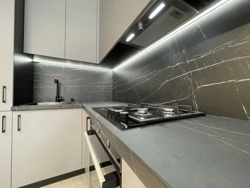 Сучасний ремонт з якісних матеріалів, керамограніт, стеля з профілем прихованого монтажу, декоративна штукатурка, вбудовані меблі на замовлення, італійська техніка.