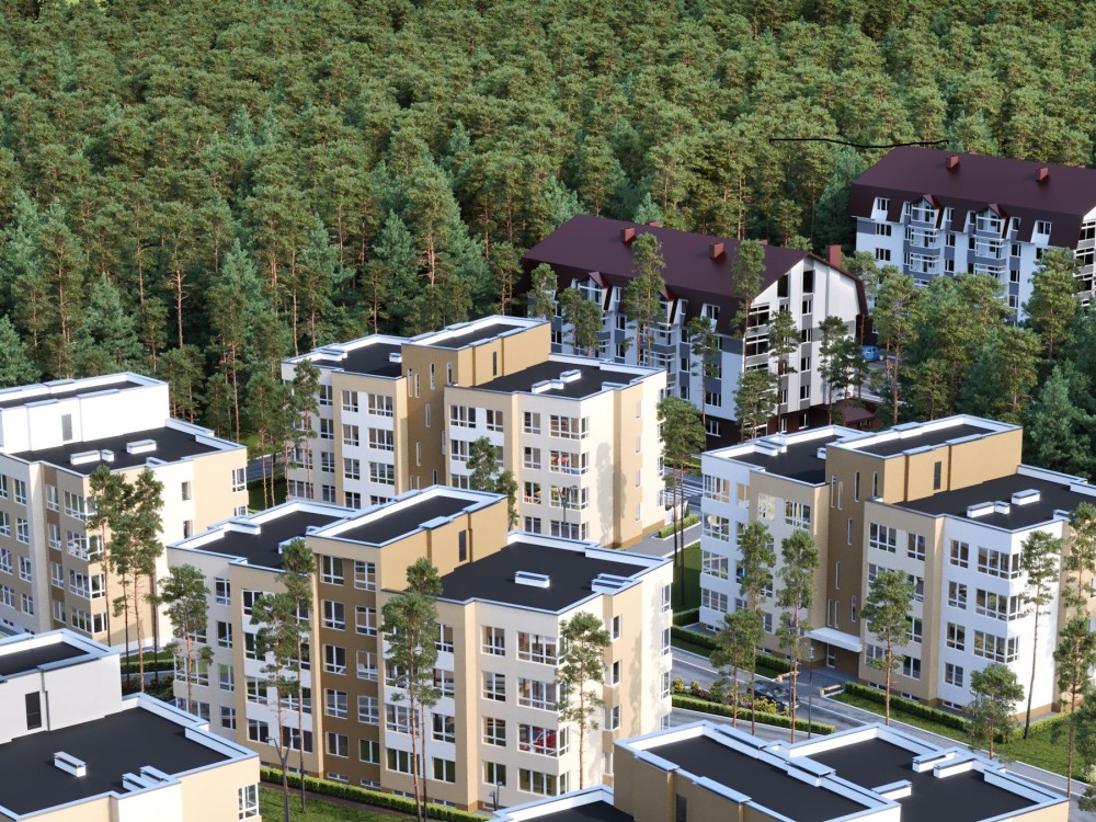 Комплекс в окружении соснового леса с собственной инфраструктурой. Есть магазин, кафе, аптека, детский сад и детская площадка, большие бесплатные парковки.