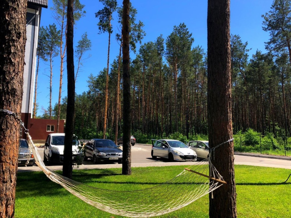 Дворик можно обустроить под свое усмотрение - хорошее место для отдыха в окружении соснового леса.