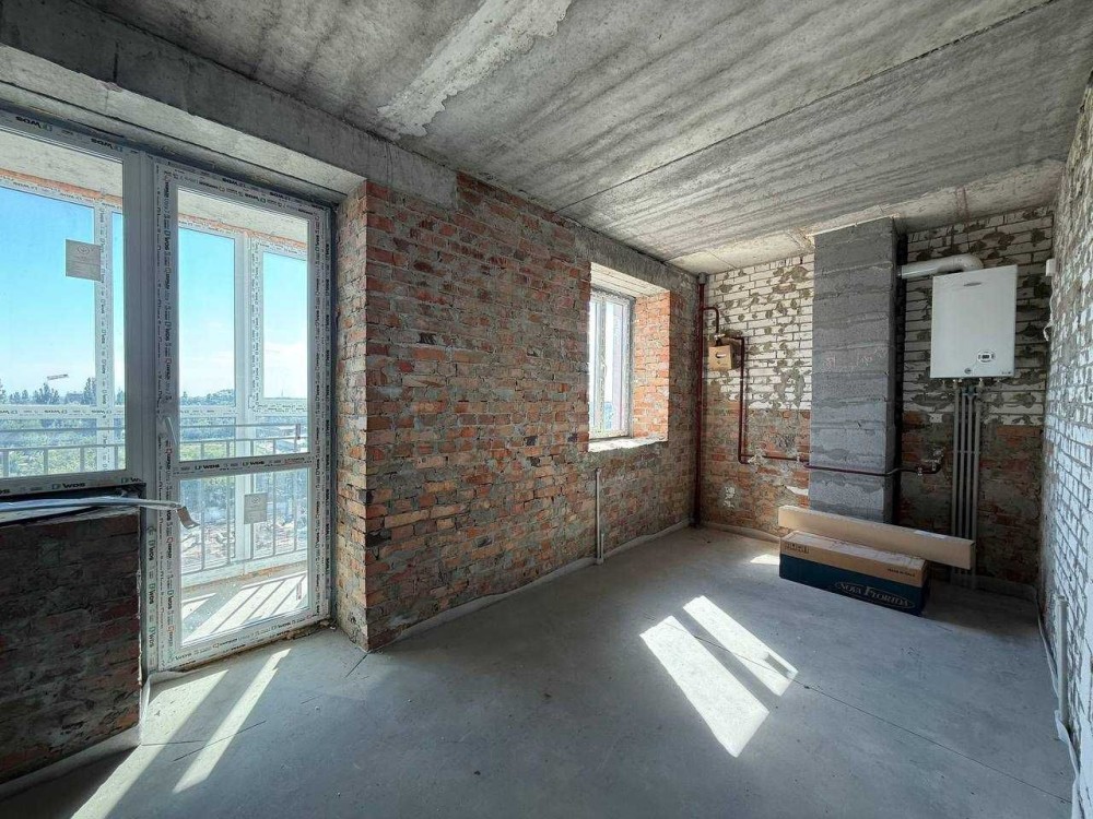 Простора 1-кімнатна квартира в сучасному цегляному будинку.