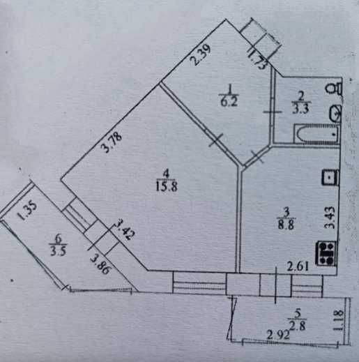 • Площа кухні 8.8 м2