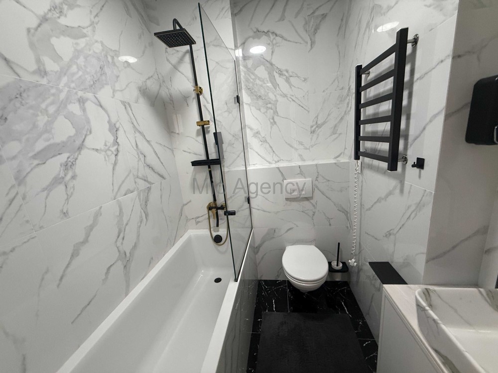 У квартирі два санвузли, один із яких межує зі спальнею, що забезпечує додатковий комфорт і приватність.