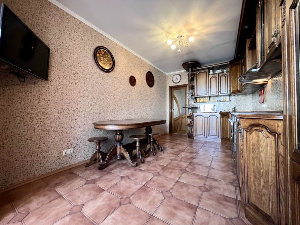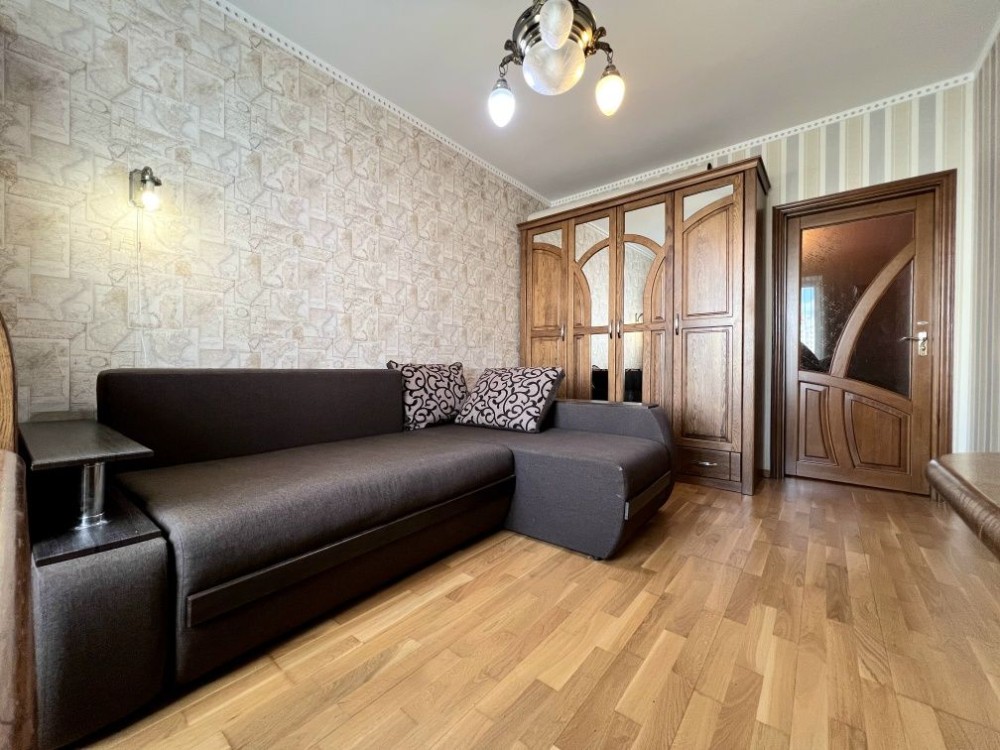 Квартира двостороння, багато світла. Зроблений якісний ремонт, на підлозі паркет і плитка. Укомплектована меблями і технікою для комфортного проживання: 4 дивана, багато шаф, 2 письмові столи, вбудована кухня з варочною поверхнею, духовкою і мікрохвильовкою, 2 кондиціонера, телевізор, пральна машина, бойлер.