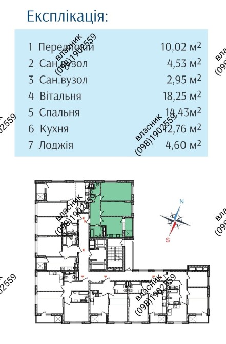 Квартира 43,5 кв м.4 поверх вікна у двір.буд 10,2 .
