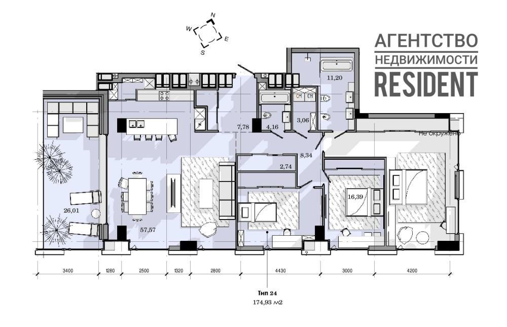 Площадь самой квартиры: 176,5 м2