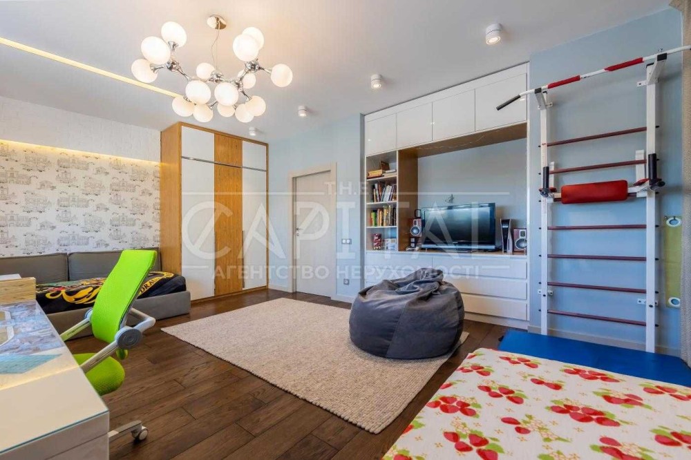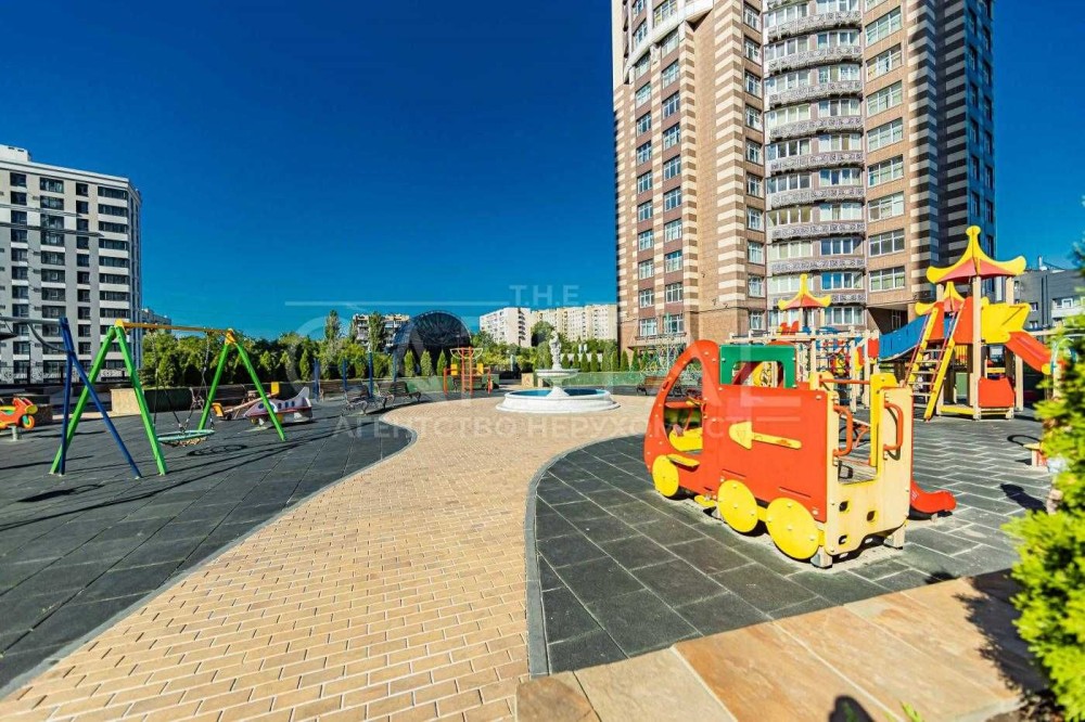 Квартира складається з великої студії 61 кв.м., візуально розділеної з кухнею та їдальнею, 3 х спалень: master bedroom – ванна (душ + ванна) – 30 кв.м., 2 дитячі, гостьовий с\у (душ ), хол, комора (пральна фоток немає).