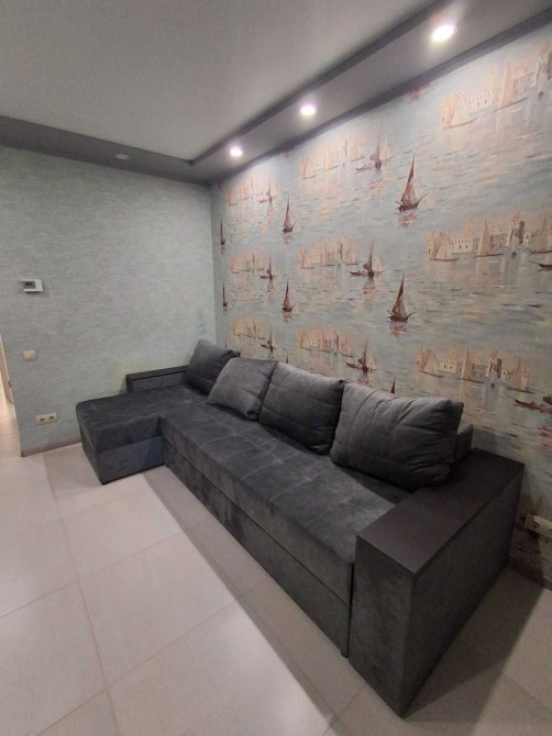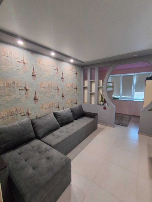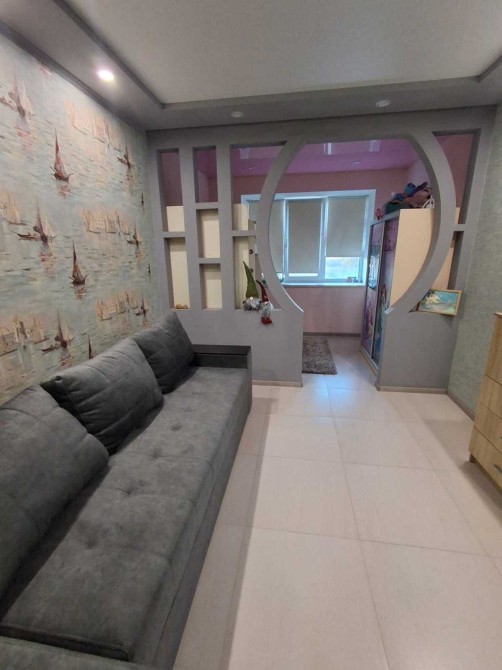 В квартирі зроблений сучасний, якісний ремонт, простора кімната розділена на дві зони.