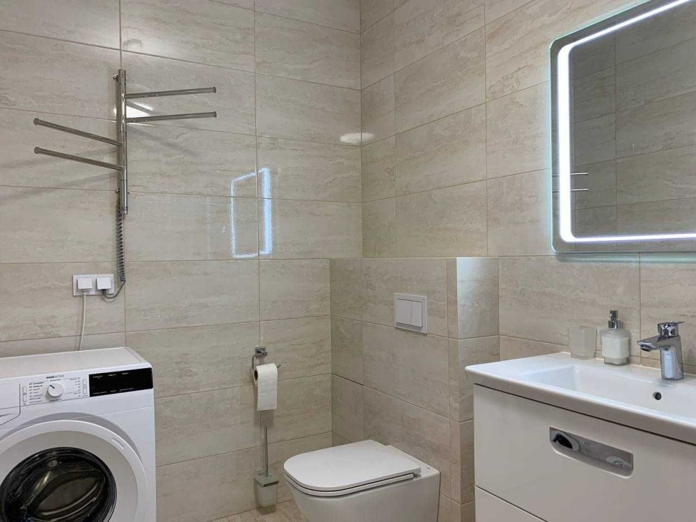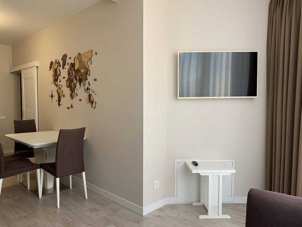 Саме тут пропонується чудова квартира з якісним ремонтом - двостороння, стильна та світла. В ній є все для комфортного та щасливого життя: двоспальне ліжко з ортопедичним матрасом, два розкладних дивани, три шафи купе, вбудована кухня. Двухконтурний газовий котел Protherm, 3 телевізори LG, кухонна техніка Gorenje (індукційна плита, духова шафа, холодильник, мікрохвильова піч, посудомийна машина), витяжка кухонна Perfelli, пральна машина Gorenje, кондиціонер CooperHunter. Також є сушарка для білизни та бездротовий пилосос Philips. Тепла підлога по усій квартирі. Панорама з вікон - на центральну алею комплексу.