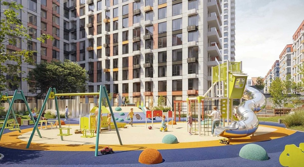 • Будинки 9–12 поверхів із безавтомобільними двориками