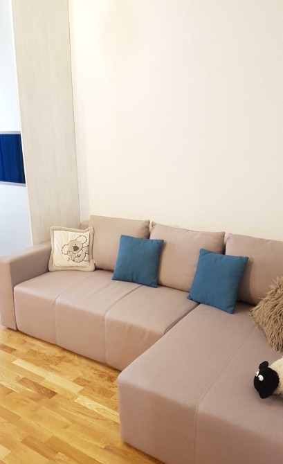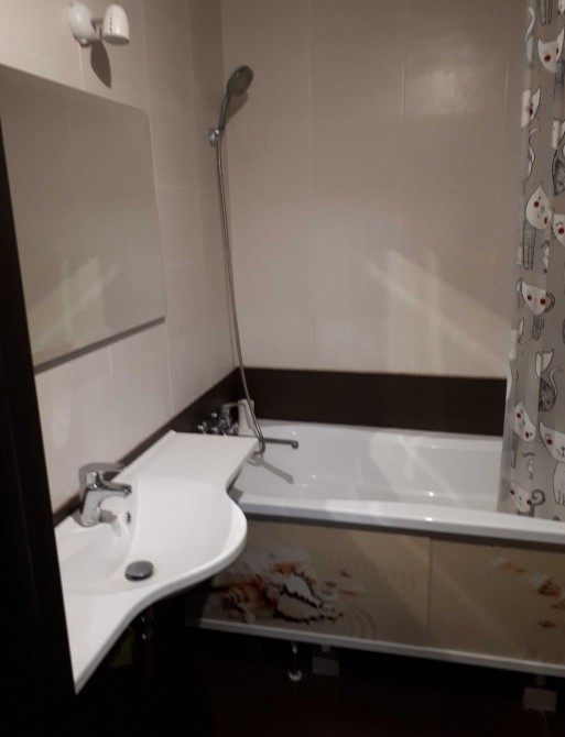 Квартира полностью укомплектована мебелью и бытовой техникой: двуспальный диван (удобный), два вместительных шкафа-купе, большой плазменный телевизор, Wi-Fi роутер, комод, бойлер, встроенная кухня, двухкамерный холодильник, микроволновая печь, стиральная машина автомат, встроенная плита, встроенный духовый шкаф, кухонная вытяжка, стол, стулья, пылесос, гладильная доска, утюг, сушилка для белья напольная и прочее добро.