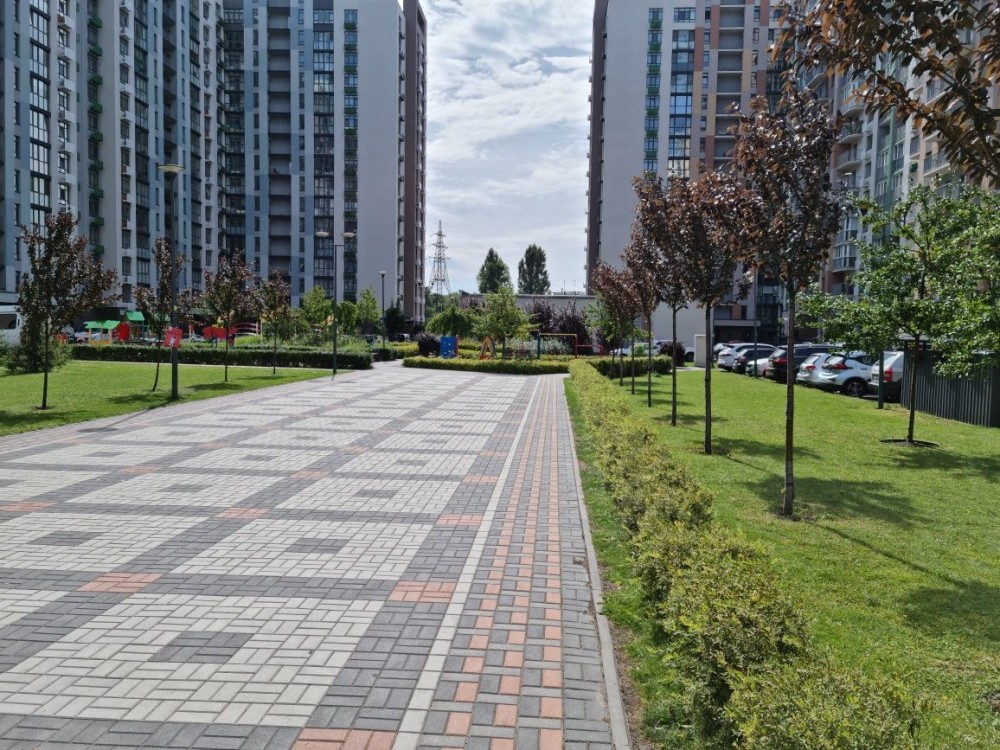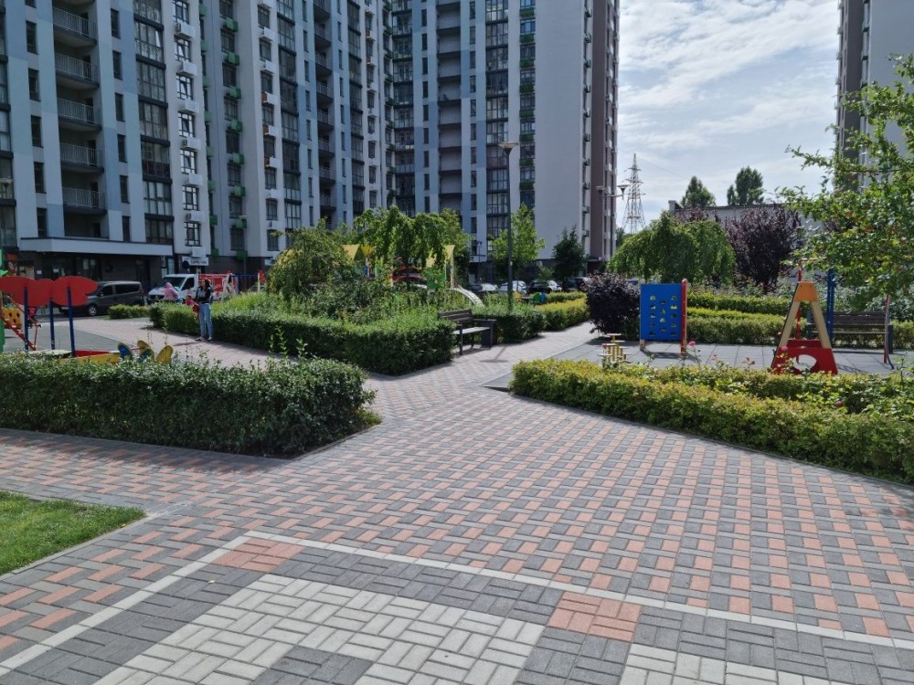 Територія комплекса оточенна парканом, має охорону та відео нагляд. На территории комплекса безліч кафе, магазинів, пошта, дитячий садочок та інше...