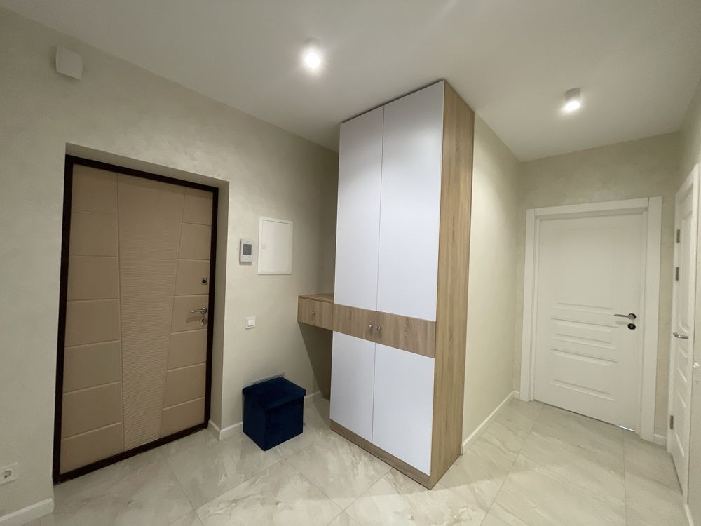 Простора двокімнатна квартира з якісним ремонтом! Укомплектована якісними меблями та технікою. Все залишається. Квартира на дві сторони, є балкон та гардеробна, простора кухня-вітальня 26 кв метрів.