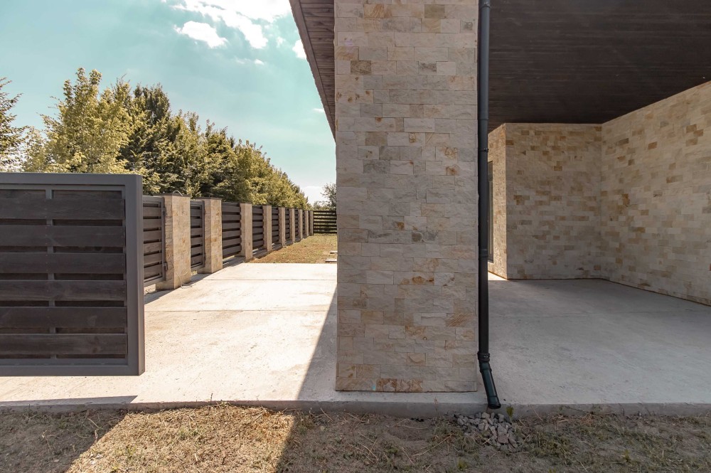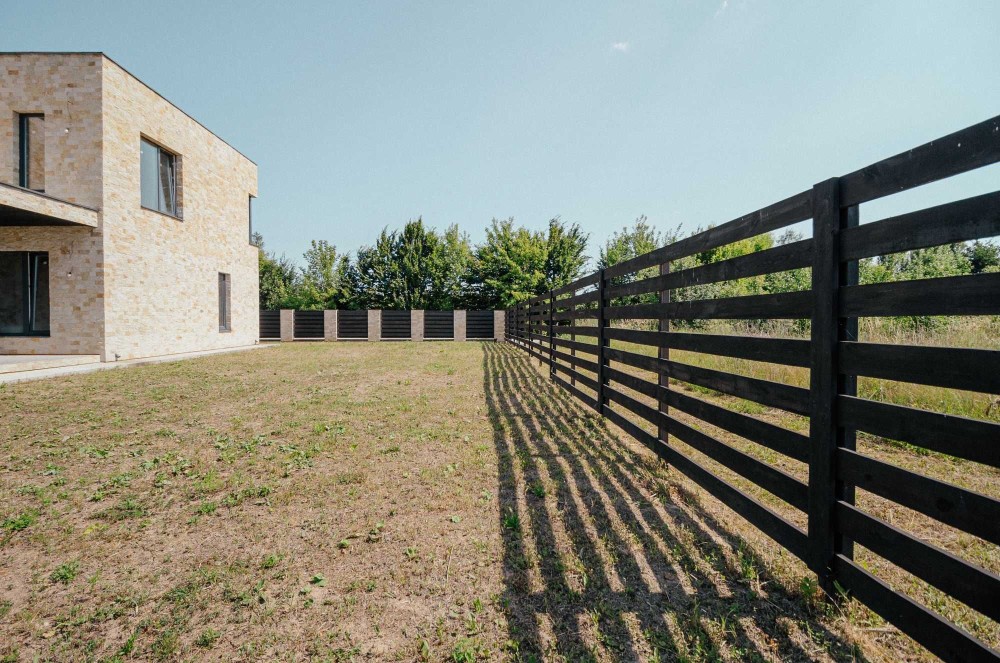 Є навіс для авто, автоматичні ворота, якісний надійний паркан із каменю, металу та дерева.