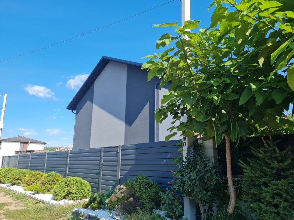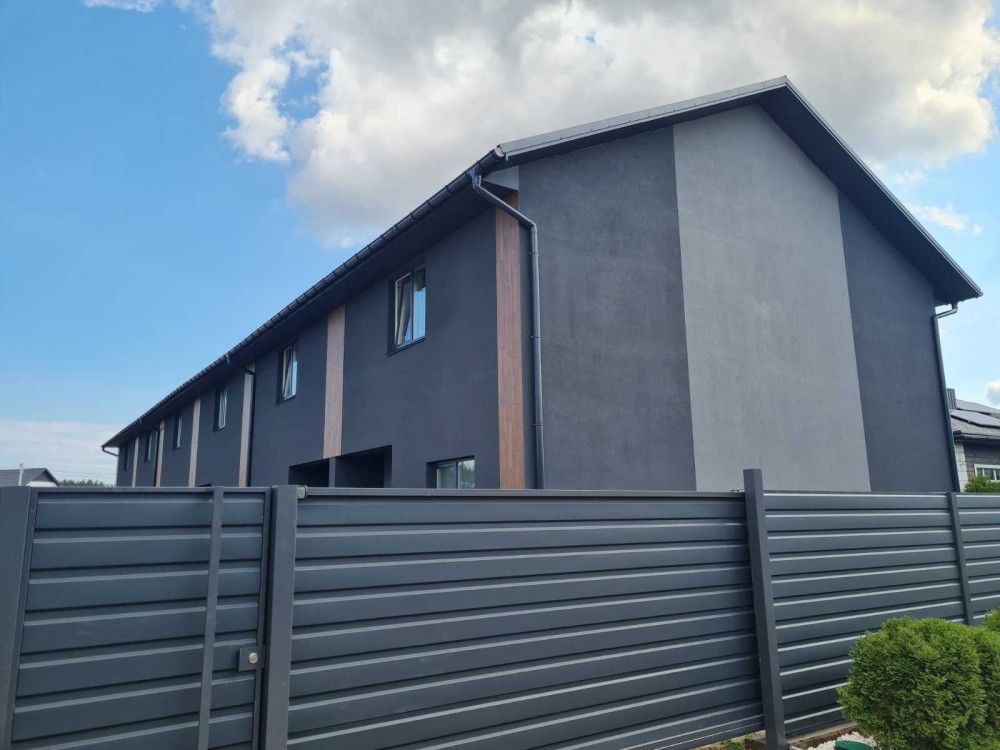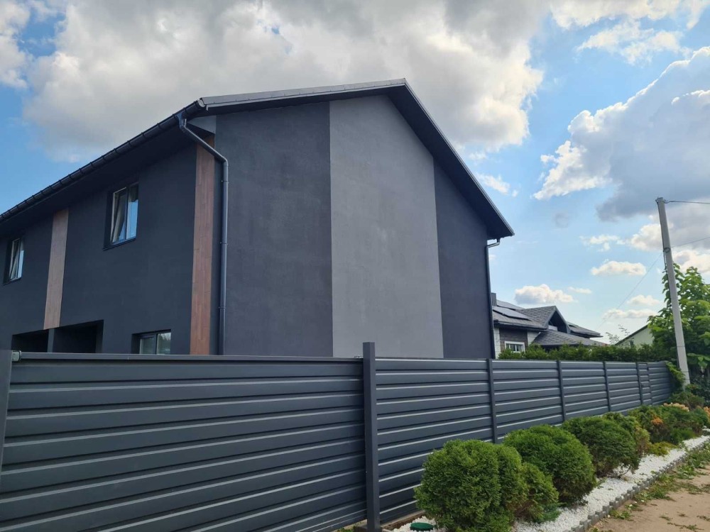 - Фасад – комбінований, гнучка кераміка та декоративна штукатурка.