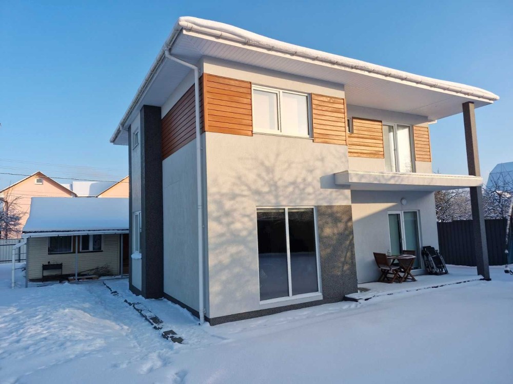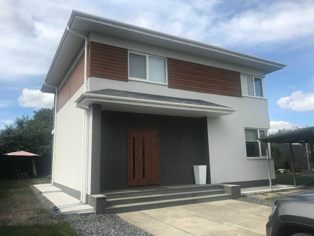 с.Гореничі, Бучанський р-н, садове товариство "Воїн-1", продаж нового будинку 2020р. розташованого на рівній прямокутній ділянці 6.5 сот. Площа: 115/45/30, будинок має 2 поверхи, 4 кімнати, 2 санвузли, велику кухню-вітальню, 2 тераси. Побудований із СІП-панелей, додатково утеплений, гарна звукоізоляція між поверхами, покрівля - бітумна черепиця, ганок оздоблений гранітом. Будинок з частковим ремонтом, в житловому стані - можна заїхати жити да поступово завершувати ремонт. Всі стіни обшиті гіпсокартоном та підготовлені до чистового оздоблення, будинок опалюється електричним котлом, заведена централізована вода, проведена каналізація, розведена електрика, добре тримає тепло, будувався для власного проживання. Поруч з основним є ще один невеличкий будиночок вільного призначення. Ділянка доглянута, засаджена травою, є кілька плодових дерев, по всьому периметру огороджена металопрофілем. Дуже гарне місцерозташування - поряд кілька озер, ліс, до громадського транспорту - 5-7 хв. пішки, магазини Сільпо, АТФ, Фора, кооператив повністю заселений, відеоспостереження. Ціна 130 000 у.о.