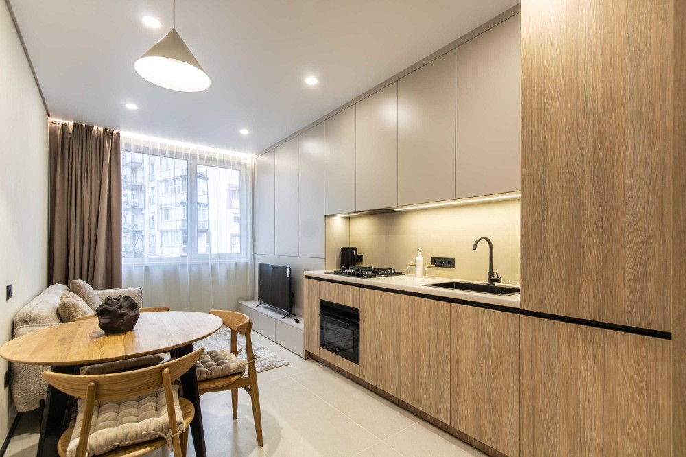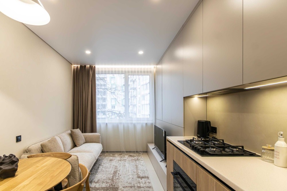 Стильна та продумана 1-кімнатна квартира з дизайнерським ремонтом у світлих, теплих тонах. Ідеально підійде для комфортного життя однієї людини або пари.
