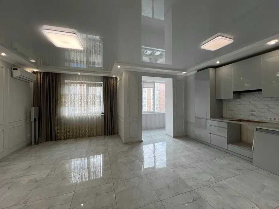 Площа квартири 74м2 . Зроблений якісний ремонт . Є кухня вбудована , та вбудовані шафи, в кімнатах потрібне додаткове меблювання.
