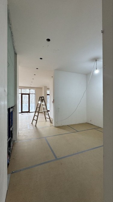 У квартирі розведена електрика, зроблені всі будівельні роботи під чистове оздоблення, тепла підлога у вітальні, кухні, санвузлах та коридорах, покладена плитка на підлозі та в санвузлах, встановлений інвертор на 5,5 кВт.