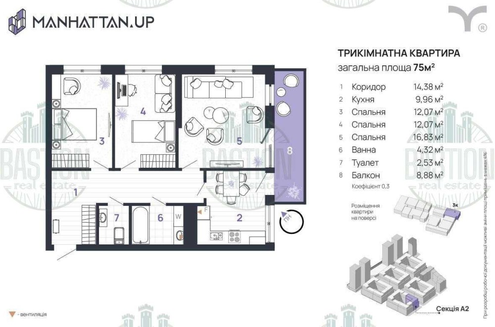 Загальна площа: 75 м²