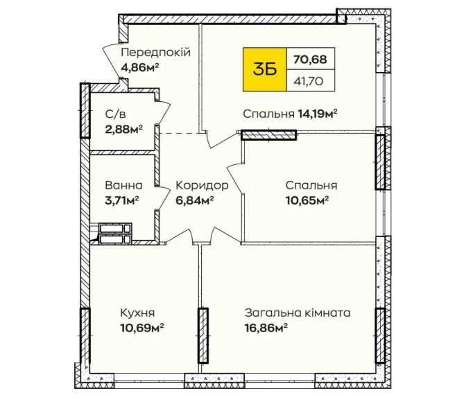 • Загальна площа 70.68 м2