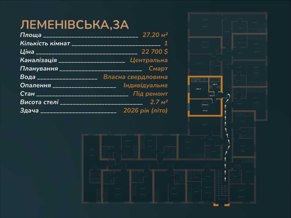 Смарт 27.2 м² за $22 700 | Фіксована ціна в грн | Здача літо 2026