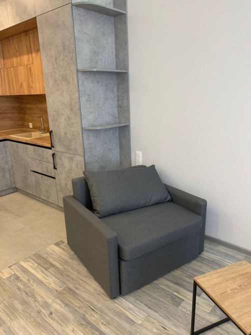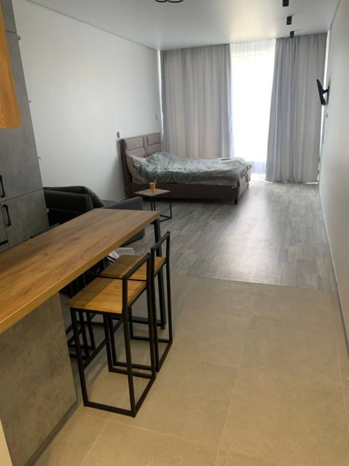 Хорошая квартира-студия в доме магазина "Виктор", меблирована, современній ремонт и дизайн, интернет, кухонные и банные принадлежности, бытовая техника. Ванна, Набор для душа, Гардероб, Охраняемая территория, Парковочное место.