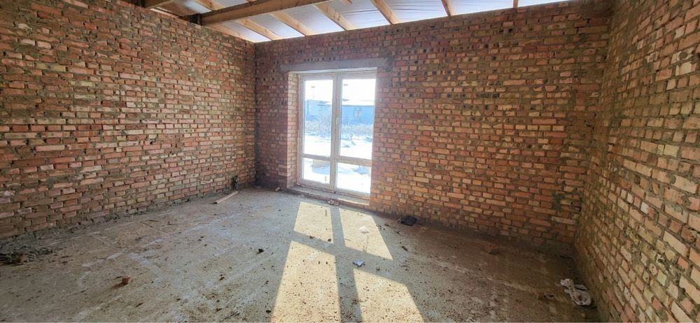 Продається новий індивідуальний житловий будинок котеджного типу загальною площею 131 м.кв. під чистове оздоблення, розташований в селі Крячки Фастівського (колишнього Васильківського) району Київської області на території нового житлового масиву із сучасною котеджною забудовою, що перебуває на відстані 20 км від станції метро «Теремки» міста Києва та за 1,5 км від міста Васильків. Житловий будинок складається з першого та мансардного поверхів. Загальна площа будинку із допоміжними спорудами становить 173,1 м.кв., з яких: а) площа будинку ‒ 131,0 м.кв., у тому числі житлова (основна) ‒ 94,1 м.кв. та допоміжна (підсобна) ‒ 39,6 м.кв.; б) площа тераси – 23,1 м.кв.; в) площа трьох балконів – 13,4 м.кв. (5,8 + 4,9 +2,7 м.кв.); площа ґанку – 5,6 м.кв. Котедж вміщує в собі 5 (п’ять) доволі просторих кімнат, 2 (два) санвузли (на кожному із поверхів), 1 (одне) технічне приміщення (котельня або бойлерна), 2 (два) коридори, 1 (одну) вітальню із виділеною еркером обідньою зоною, що поєднана з кухнею. Із вітальні є окремий вихід на велику терасу, з якої відкривається затишний вигляд на внутрішній двір. Кожна з трьох мансардних кімнат має окремий вихід на балкон. Над усією площею мансардного поверху розташоване містке горищне приміщення. Будинок приєднаний до електропостачання потужністю ‒ 12кВт (3 окремих фази). Має свердловину глибиною 55 метрів із фактичним дебітом (спроможною потужністю) ‒ 2,5 м.куб./год. та каналізацію септик з переливом на 11 м.куб. На усій площі першого (крім житлової кімнати) та у санвузлі мансардного поверхів встановлена система водяної теплої підлоги фірми «Rehau». По котеджу розведені: опалення, водопостачання і каналізація. В будинку передбачена можливість встановлення камінної топки, а також приєднання котеджу до газорозподільної мережі та всесвітньої мережі Інтернет. Індивідуальний житловий будинок розташований на земельній ділянці площею 0,075га з цільовим призначенням – (02.01) для будівництва і обслуговування житлового будинку, господарських будівель і споруд (присадибна ділянка). Під житловою забудовою перебуває 0,0115га земельної ділянки, решта 0,0635га займає просторий двір. Кадастровий номер земельної ділянки: 3221487004:03:006:0328. Земельна ділянка огороджена парканом із монолітного фундаменту, що опорядковане металевим штахетом із обох боків та металевим профілем з тильної та фасадної сторін. Заїзд у двір має відкатні ворота. На території двору (перед будинком) облаштоване загальне паркомісце на 2 (два) автомобіля, решта двору засіяне газонною травою. Котедж побудований з якісних матеріалів за проектом європейського архітектурного бюро. Так, фундамент, перекриття та міжповерхові сходи ‒ монолітні. Стіни будинку збудовані з газоблоку AEROC D500 (товщиною 300мм), що утеплений пінопластом 100мм. Внутрішні міжкімнатні перегородки виконані із цегли. Дах ‒ металочерепиця фірми «Ruukki», що утеплений мінераловатними плитами загальною товщиною 200мм. Вікна вироблені з профілю фірми «Rehau» серії EVRO 70. Фасад котеджу покритий акриловою штукатуркою. Будинок за усім периметром має вимощення шириною 0,9 метри, що облаштоване фігурними елементами мощення (ФЕМ). Зручне ергономічне планування будинку, а також наявність високих стель обох поверхів дає можливість відчувати себе вільно і затишно. Завдяки правильному утепленню зовнішніх стін будинку, у ньому прохолодно влітку та тепло вз
