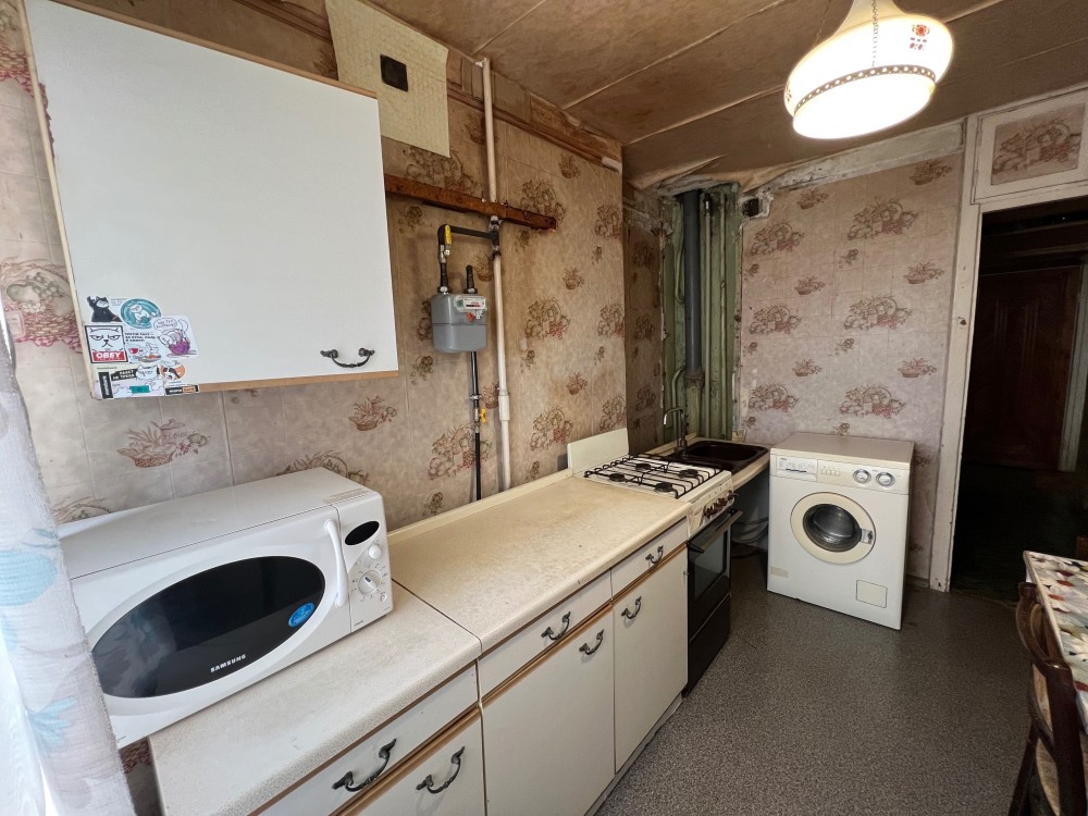 В квартире все необходимое для проживания. На кухне газовая плита и стиральная машина, в санузле бойлер для горячей воды. В комнате установлена двуспальная кровать и диван.
