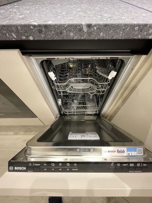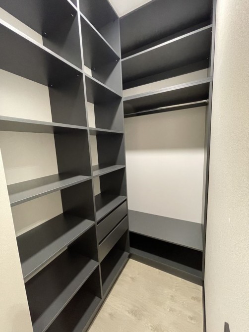 В квартире вся мебель была изготовлена под заказ (с фасадами немецкого бренда и доводчиками), установленная сантехника - европейского качества, а встроенная техника - премиальных брендов Bosh и Samsung.