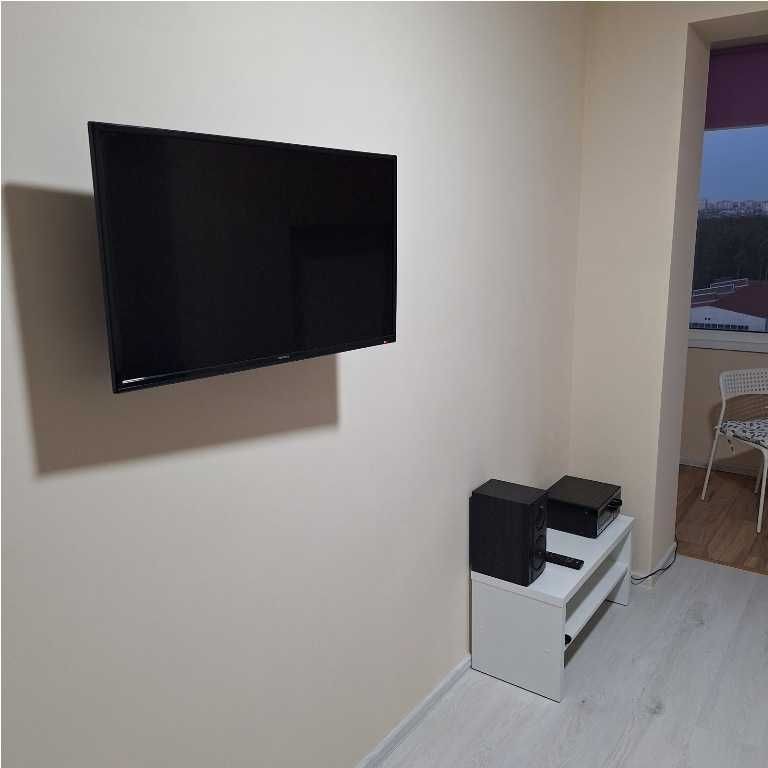 В квартирі є: розкладний двоспальний диван, телевізор, холодильник, ПМА, стіл, стільці, комод, шафа в вітальні; двоконтурний газовий котел (завжди є гаряча вода), мікрохвильова піч, посуд. Помірні комунальні платежі.