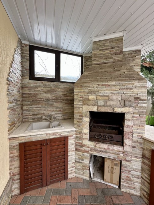 На ділянці є 1-поверхова будівля з зоною BBQ, кімнатою відпочинку та підвалом під приміщенням.