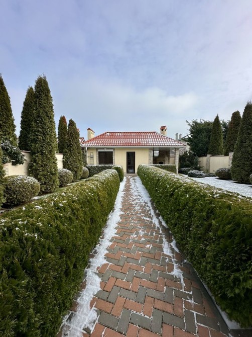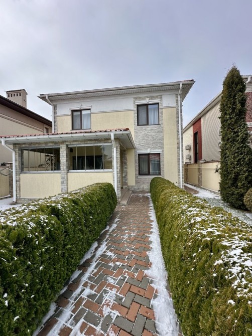 Продається капітальний житловий будинок в охайному, доглянутому стані: заходь - живи. Рік побудови - 2014. Розташування: Київська область, Бориспільський район, село Дударків (район зрубів). Відстань від воріт до ст. метро "Бориспільська" - 22 км, до ст. метро "Лісова" - 26 км. Під'їзд асфальтований. Загальна площа 216,8 кв.м., житлова - 111,6 кв.м., кухня - 12,4 кв.м., відкрита тераса 22 кв.м. В будинку чотири житлові кімнати (спальні), вітальня, два с/вузли з душовими кабінами, котельна, пральна, підвал, гараж на два авто (автоматичні ворота), погріб. Трифазне електропостачання з окремими стабілізаторами (на кожну фазу). Встановлено бензиновий генератор потужністю 6,5 кВт з автоматичним вмиканням у разі зникнення напруги в мережі. Газовий (з джерелом безперебійного живлення) та електричний опалювальні котли, бойлер для підігріву води. Водопостачання - особиста свердловина глибиною 60 метрів з фільтраційною системою очищення води. Чотири накопичувальні ємності (септики): для фекальної води (з вентиляцією) та відведення дощової (талої) води. Відеонагляд, домофон, сигналізація, провідний Інтернет. Площа земельної ділянки 22 сотки. Цільове призначення: будівництво та обслуговування житлового будинку. На території: літня кухня з барбекю, господарче приміщення, погріб, теплиця з полікарбонату, літній душ з вбиральнею, вольєр площею 13 кв.м., садок, газон з автоматичним поливом, город площею 7 соток. У садку: яблуні літніх та осінніх сортів, сливи, персики, вишні, черешня, айва, груша, смородина, виноград. По периметру ділянки паркан з профільного листа (фасадна частина на фундаменті з каменю). Автоматичні розсувні ворота. Будинок не перепродавався. Первісний документ - Свідоцтво про право власності. Поштова адреса, реєстрація місця проживання. Продаж за ціною власника, без комісійних посереднику.