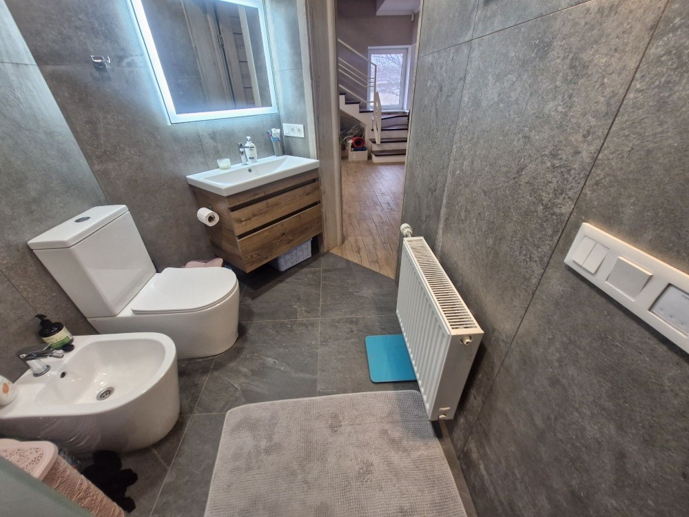 Предлагается к продаже новый,современный двухэтажный дом. В доме большая кухня студия, три спальни,гарберобная, кабинет , два санузла и не большой подвал. Новая мебель, техника, тёплые полы. Коммуникации свет, вода, газ, отопление газовое, есть комплект резервного питания. Дом находиться на 3х сот земли. Участок ухоженный,