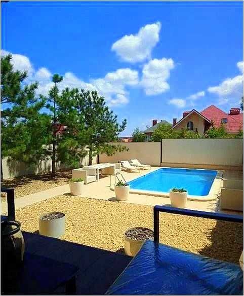 Во дворе бассейн, терраса с зоной отдыха и барбекю. Территория, на которой расположен дом – 6 соток. Место для нескольких авто.