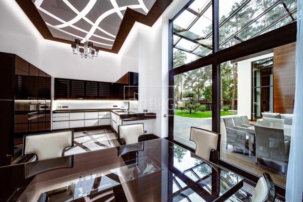 Состояние дома: Авторский дизайн в современном стиле Арт Деко, витражные окна, дом укомплектован мебелью и бытовой техникой от мировых производителей. Высота потолков 4.5 м, в гостиной 6.5 метров