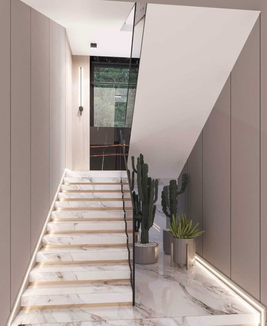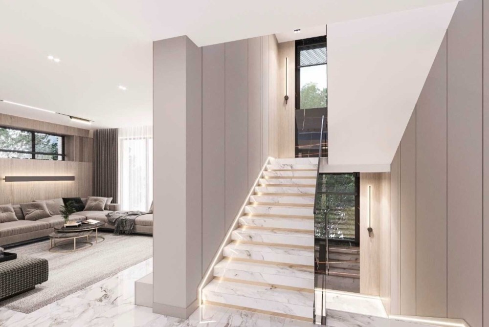 Современная архитектура, плоская эксплуатируемая крыша и продуманная планировка для комфортной жизни.